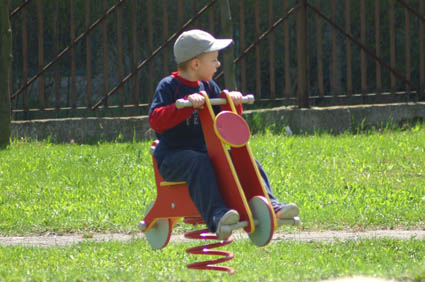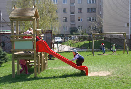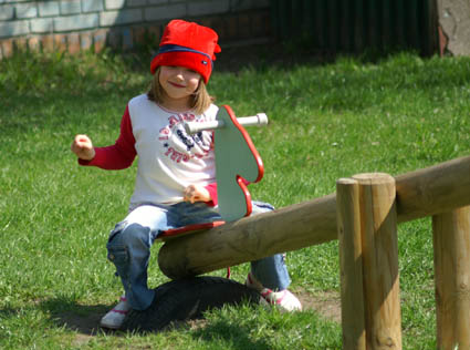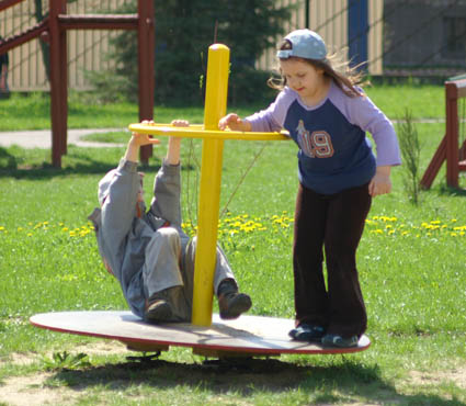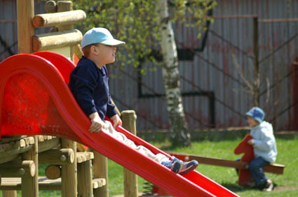 Możemy pochwalić się dużym ogrodem, dobrze wyposażonym w kolorowy i bezpieczny sprzęt do zabaw i zajęć terenowych, tj. huśtawki, zjeżdżalnie, drabinki, 2 piaskownice oraz górkę do zjeżdżania zima na sankach.